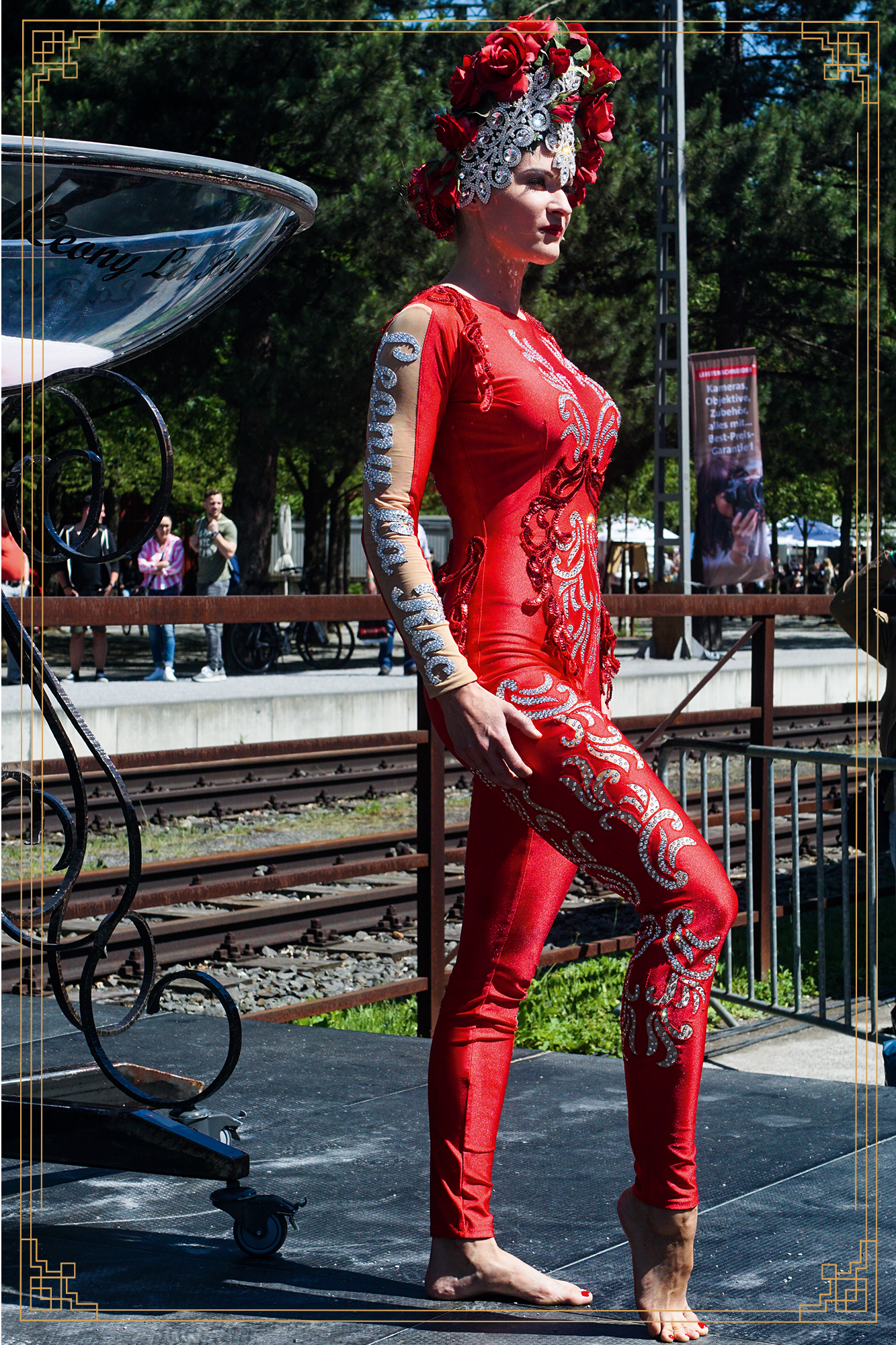 In einem prachtvollen Showkostüm begrüße ich Ihre Gäste, posiere für stilvolle Erinnerungsfotos und mische mich als charmanter Walking Act unter das Publikum.
