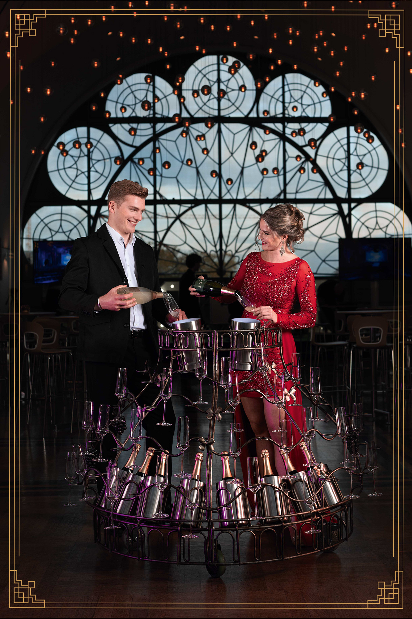 Schon die klassische Champagnerglas-Show ist ein spektakulärer Blickfang – doch mit dieser Premium-Version wird sie zu einem unvergesslichen Erlebnis.