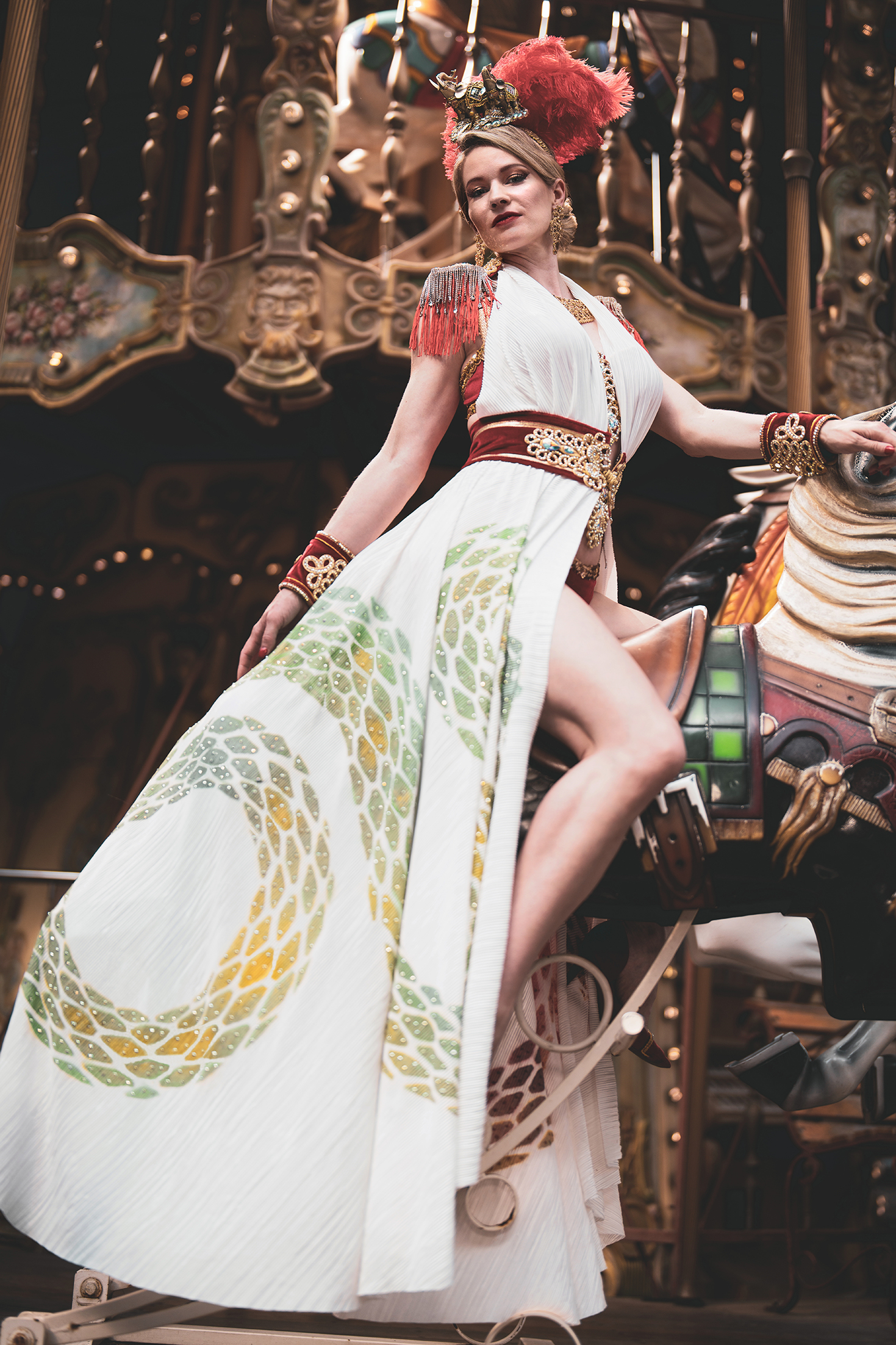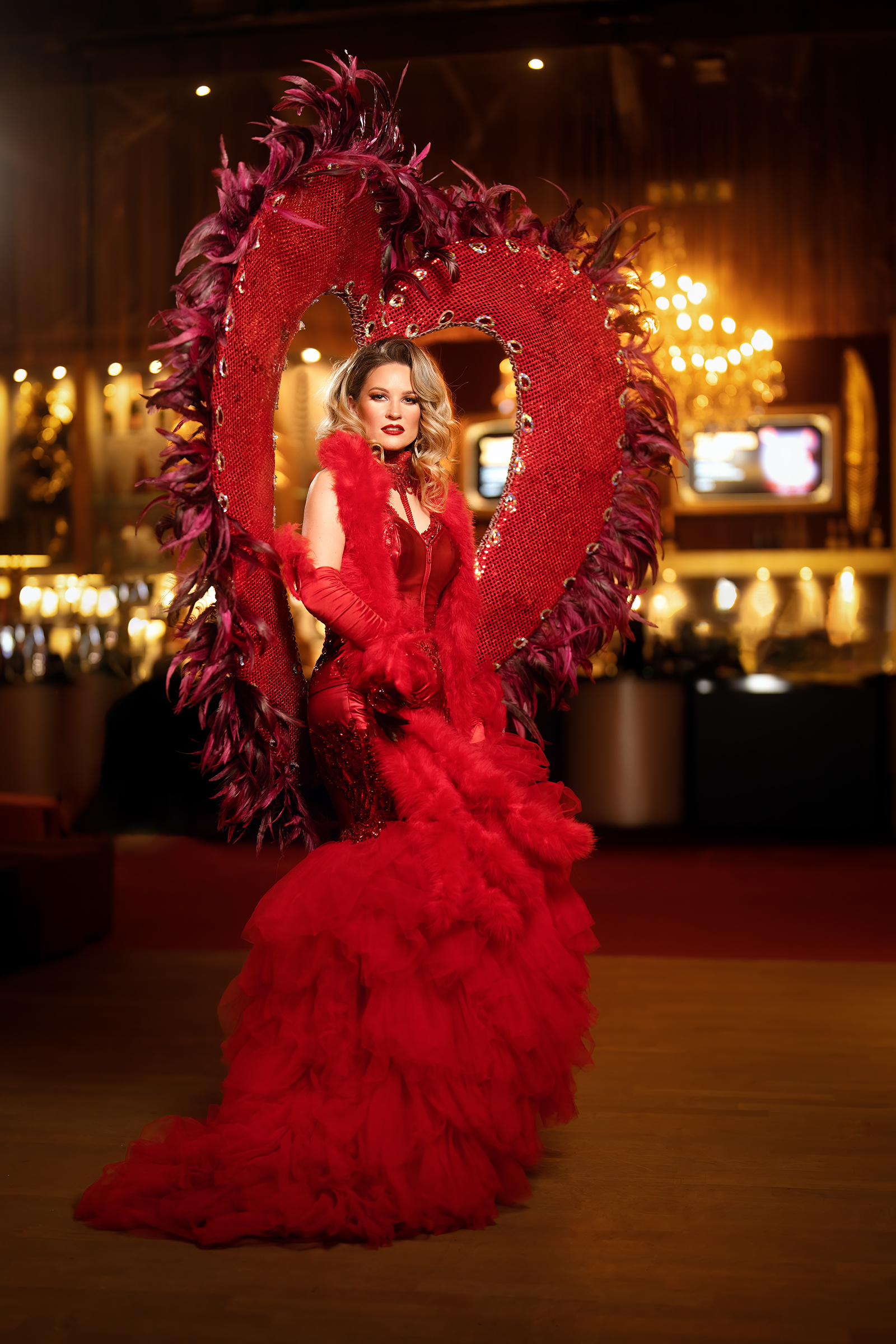 Jedes meiner Kostüme ist ein echtes Kunstwerk: individuell angefertigt, besetzt mit funkelnden Swarovski-Steinen, gefertigt aus edelsten Stoffen und verziert mit prachtvollen Federn. Diese hochwertigen Sonderanfertigungen machen jede Performance zu einem unvergesslichen Erlebnis – visuell wie emotional.