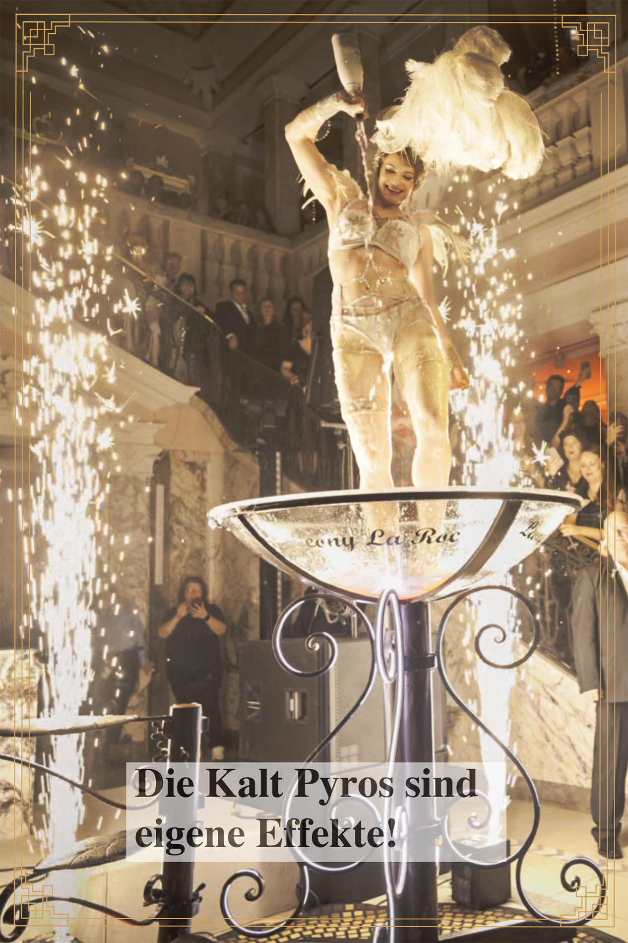 Schon die klassische Champagnerglas-Show ist ein spektakulärer Blickfang – doch mit dieser Premium-Version wird sie zu einem unvergesslichen Erlebnis.